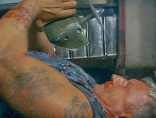 There's some brutal action, nail-biting fights and violence that pushed the limit of the film's 'A' classification. Particularly nasty is the repeated victimisation of Bisset's character, one scene was regularly cut out altogether from TV showings, when she is terrorised by voodoo intruders. The baddies are also keen to see her naked, as are the film-makers - her first diving scene is in a wet t-shirt.